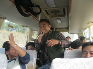 757,我們的旅行正式啟航了。一路之上,大家歡歌笑語,情誼融融。娛樂之中,更是形式百出,其中《斗牛》的呼喊聲更是讓人激情四溢。車內車外,風彩各現,胡董在此情此景的觸動下,興然謂詩一首:
