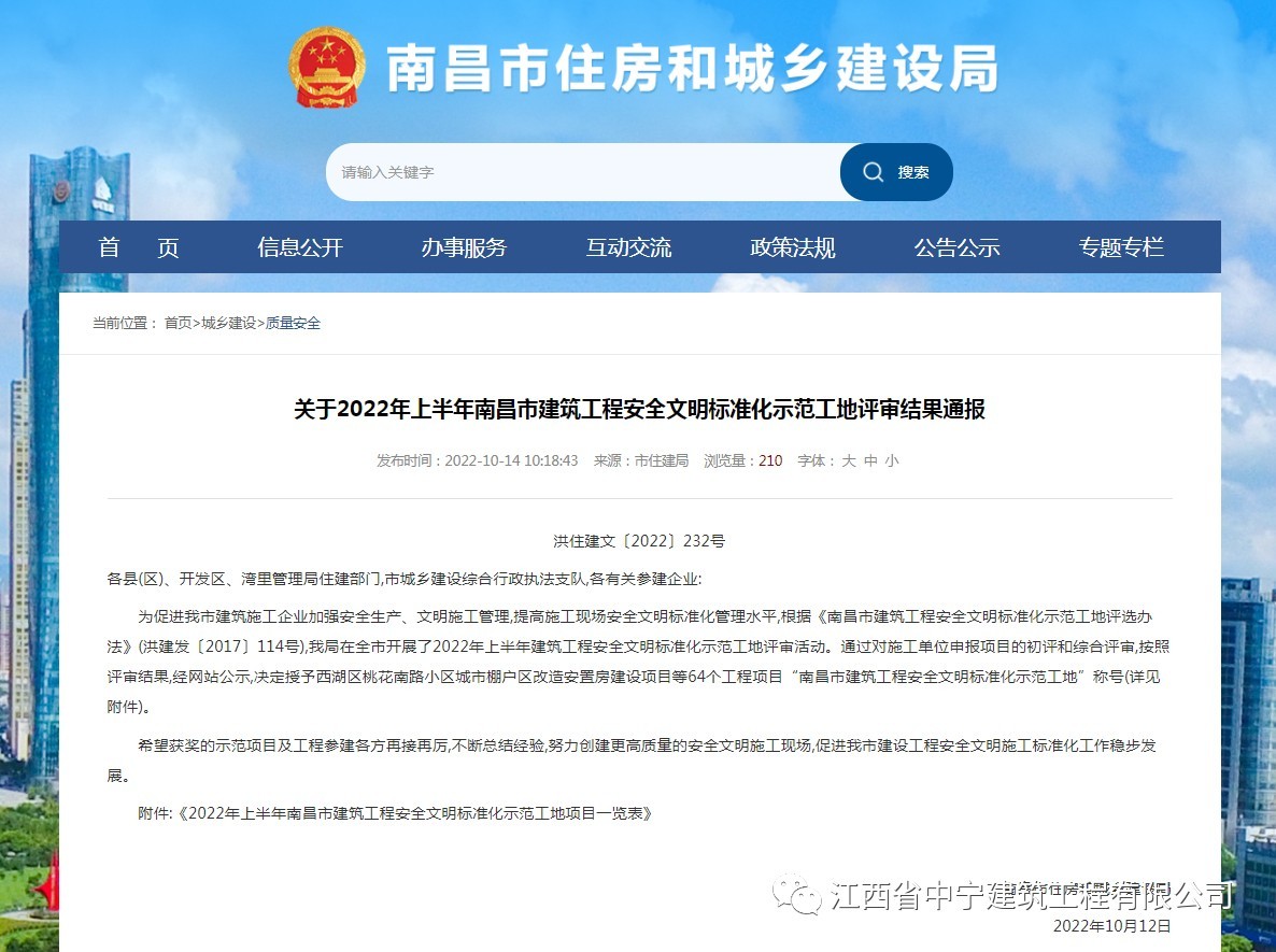 近日,南昌市住房和城鄉建設局發布了公告,江西省中寧建筑工程有限公司承接的從鑫大廈項目取得南昌市建筑工程安全文明標準化示范工地。